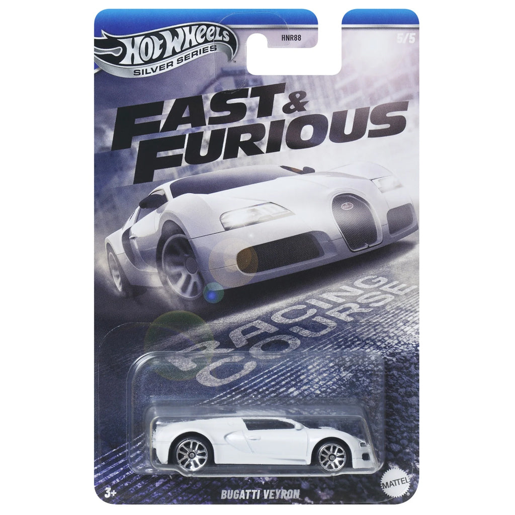 Hot Wheels Fast & Furious: Racing Course series - Bugatti Veyron in White. Number 5 of 5 in this highly popular assortment. Official licensed product. This approx 1:64 scale diecast model of the F&F Bugatti Veyron is part of mix 3 of the Hot Wheels 2025 Fast & Furious Silver label series.